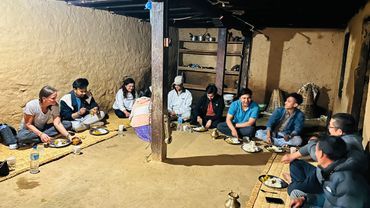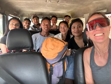 Group photo of foundation members and volunteers in front of our transportation to our Sindhuli and